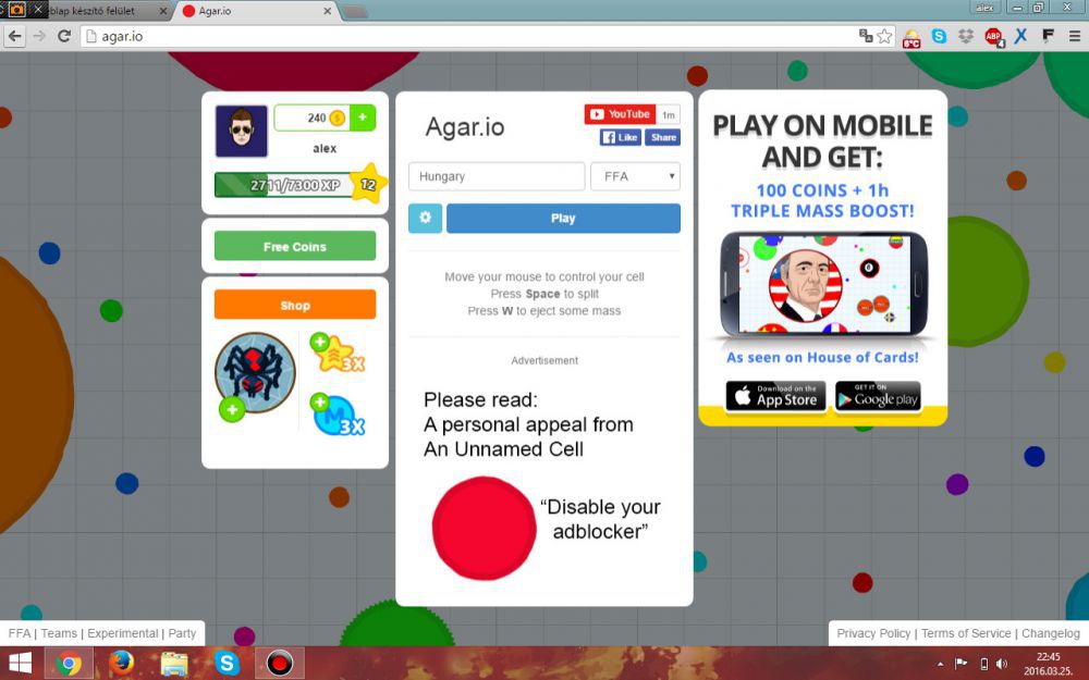 Agar.io Kinézetek Ha még nem tudtátok akkor biztos kíváncsiak voltatok arra hogy mások hogyan vesznek fel más kinézetet a Szines golyócskákon kívül. Nos ez egy nagyon egyszerű dolog lényege hogy ahova a nevünk írjuk ide azt kell írjuk hogy "pl steam"és egyből olyan kinézetekbe varázsol. Itt tekinthettek meg Több kinézetet: